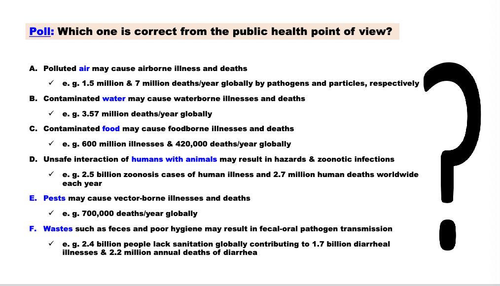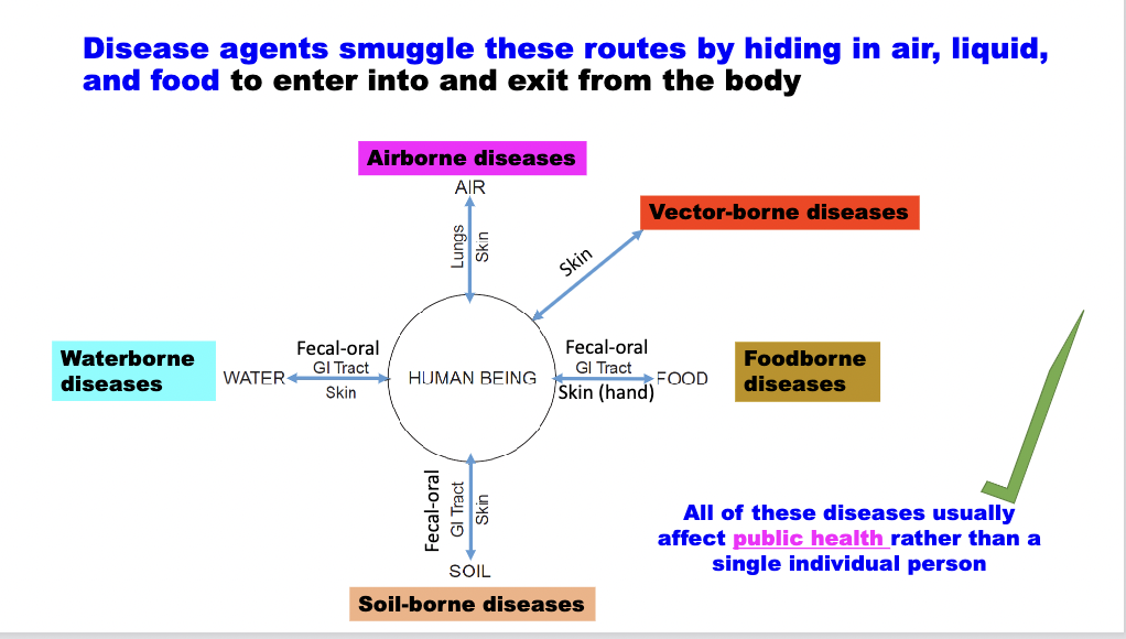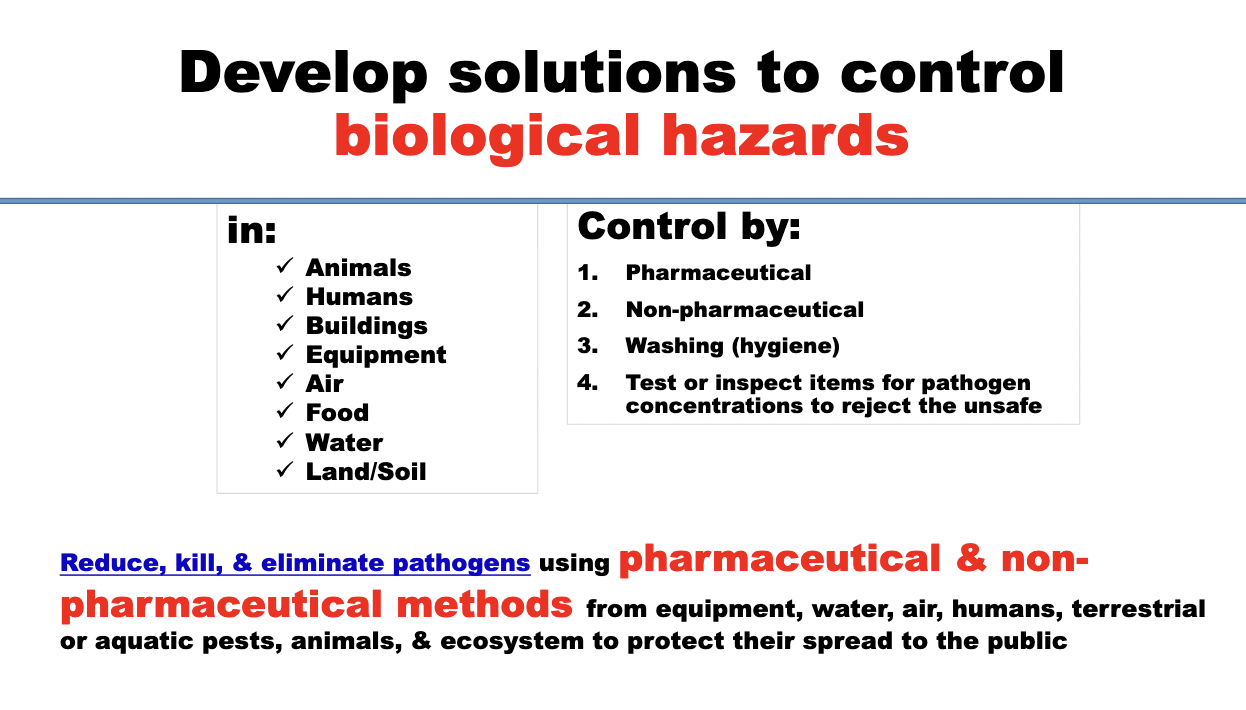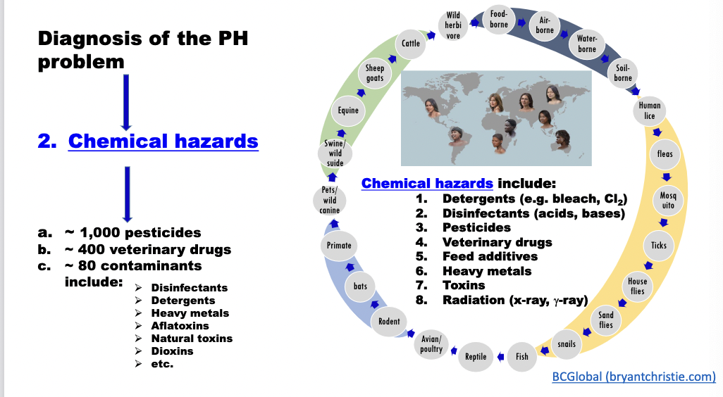 If pathogen is not infectious disease, it can be chemical. These chemicals may be pesticides, detergents, toxins, or fungal toxins, etc. Come to people from animals if there is residues in animals, we eat animal –> comes to us in foods.