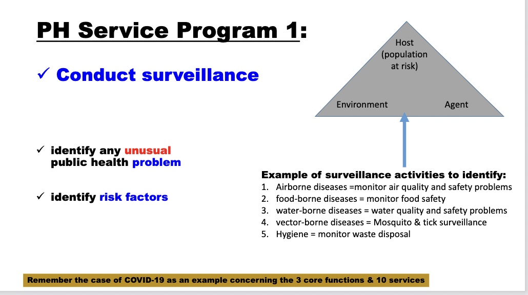 Remember the case of COVID-19 as an example concerning the 3 core functions & 10 service