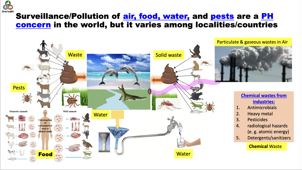 We have to collect samples from animals, air they breathe, waste fecal material, water and food, pests in region.