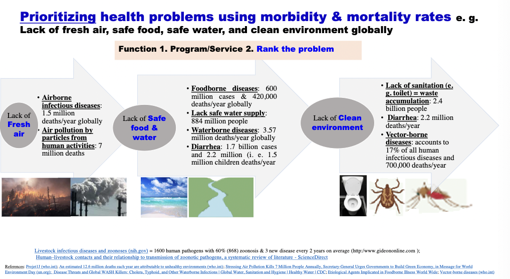2. Investigate the risk factors, prioritize (3P), and diagnose (= causality) the health problems of the population