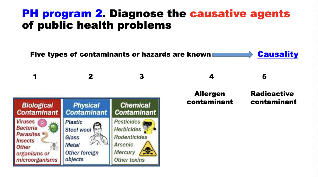 Public health service program #2 also investigates/diagnoses the causality. Explain how.