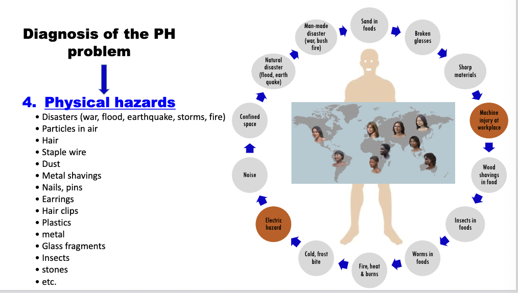 Physical hazard: war, flood, earthquake, storms, fires, car accident, etc.