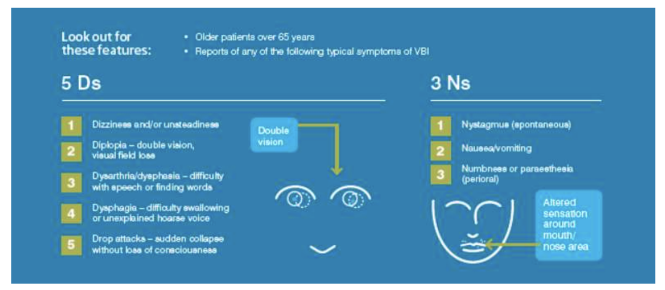 If the symptoms are unclear and the clinician is exploring the possibility of VBI differentiating the source of any dizziness, light headahces or unsteadiness