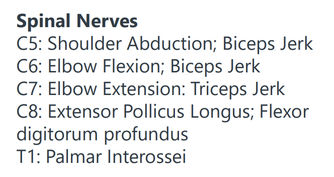 Understand what peripheral nerves are associated with wrist extension, thumb abudcition and 5th digit abudction.