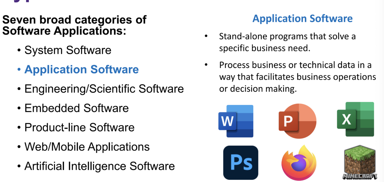 A combination of instructions to execute, data structures to manipulate information, and documents that describe operation and use of programs