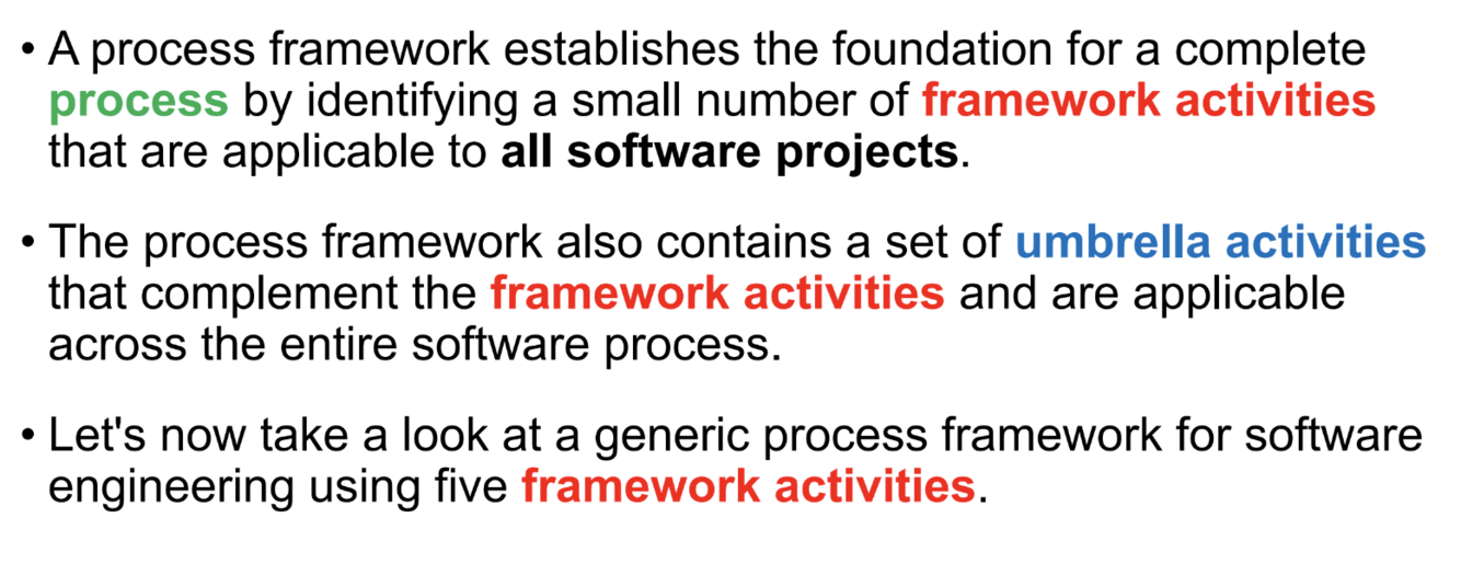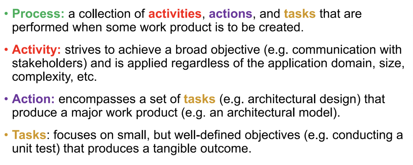 What is the process framework: what is a process? Activity? Action? Tasks?