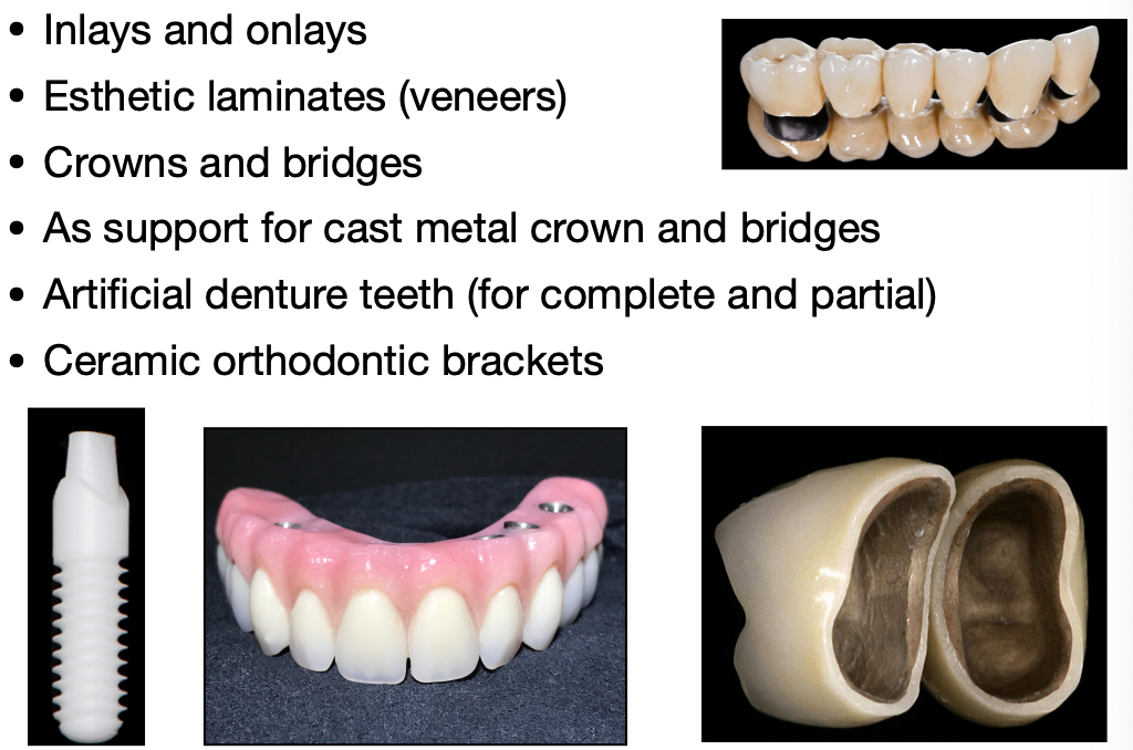 What are 6 applications of dental ceramics?
