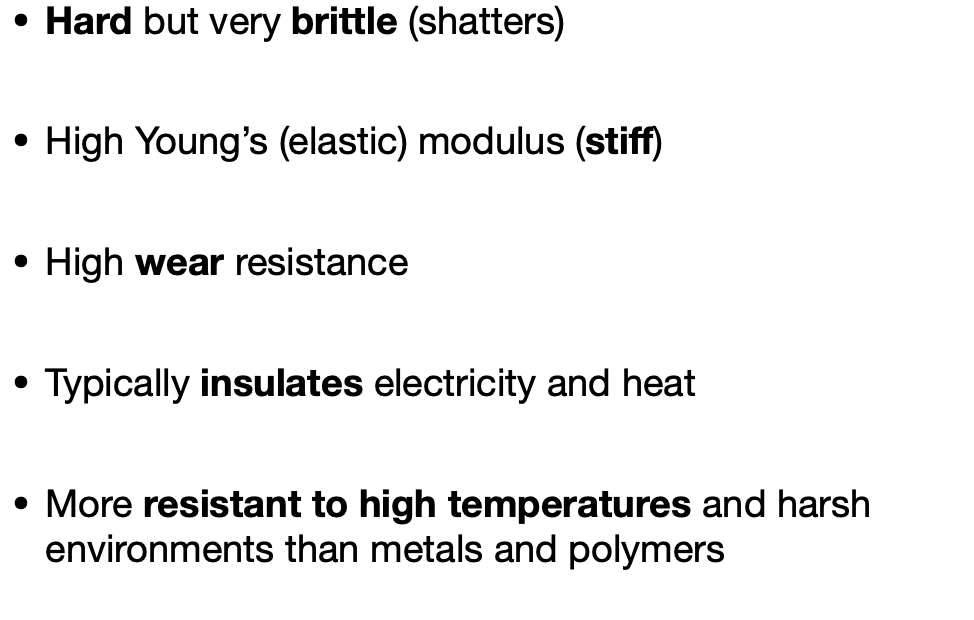 What are the 4 properties of ceramics?