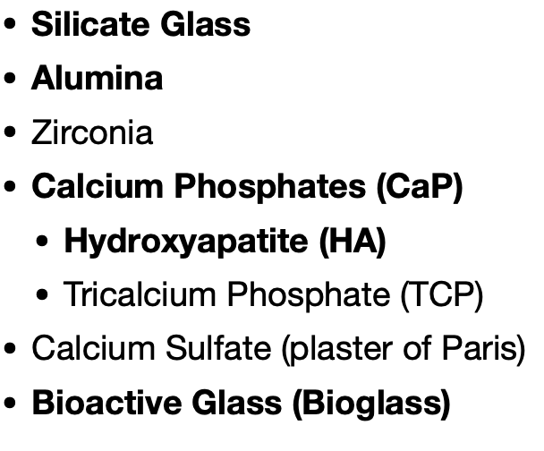 Alumina, Zirconia, and Beryllium are types of