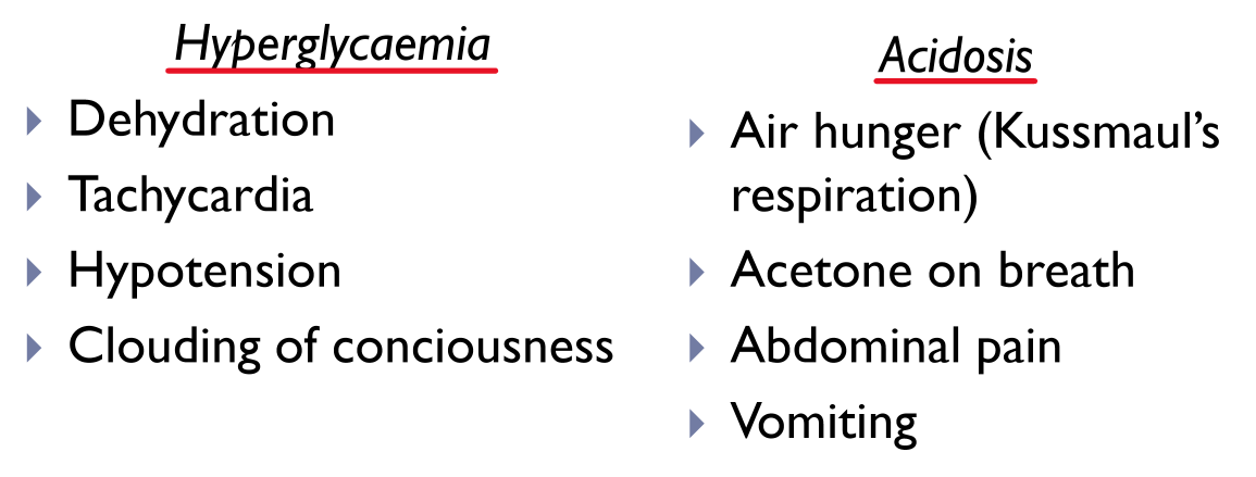 What are some clinical symptoms of Hyperglycaemia & Acidosis?