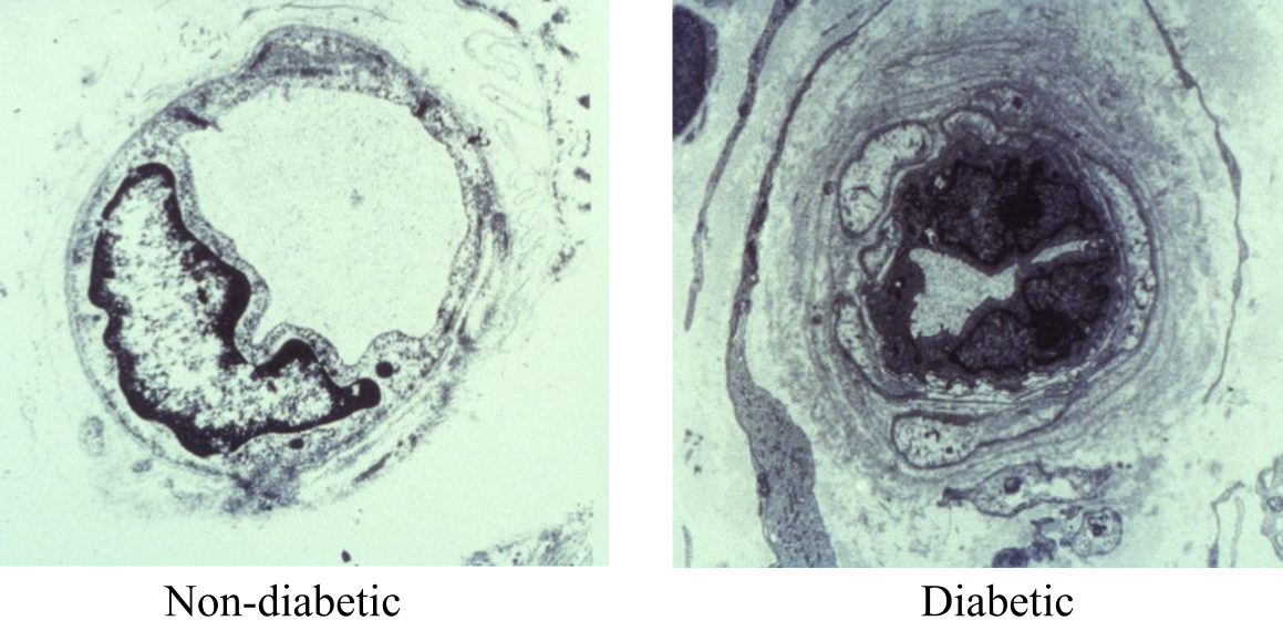 Hyperglycemia causes glucose to move into the eye’s lense, causing it to puff up and not accomodate as well