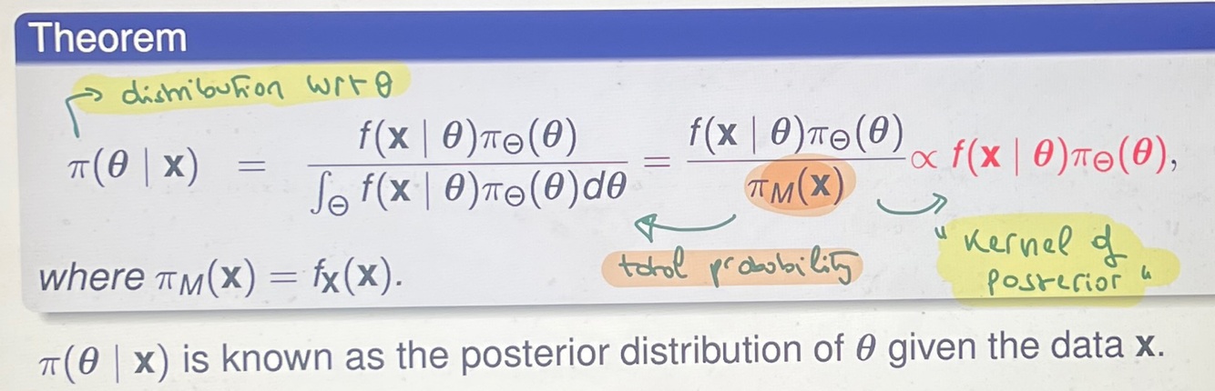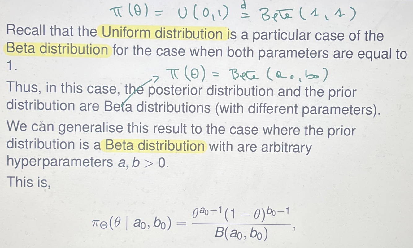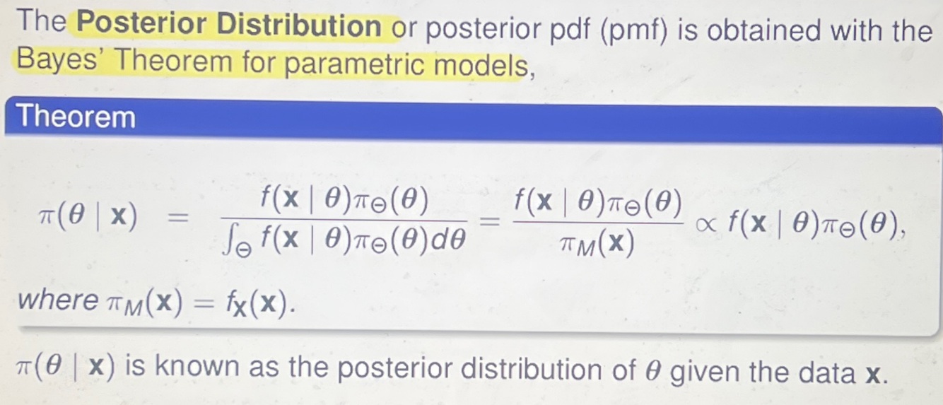 A family F of probability distributions in Θ is said to be conjugate (or closed under sampling) for a likelihood function f(x|θ) if, for every prior πΘ € F , the post dist π(θ| x) also belongs to F