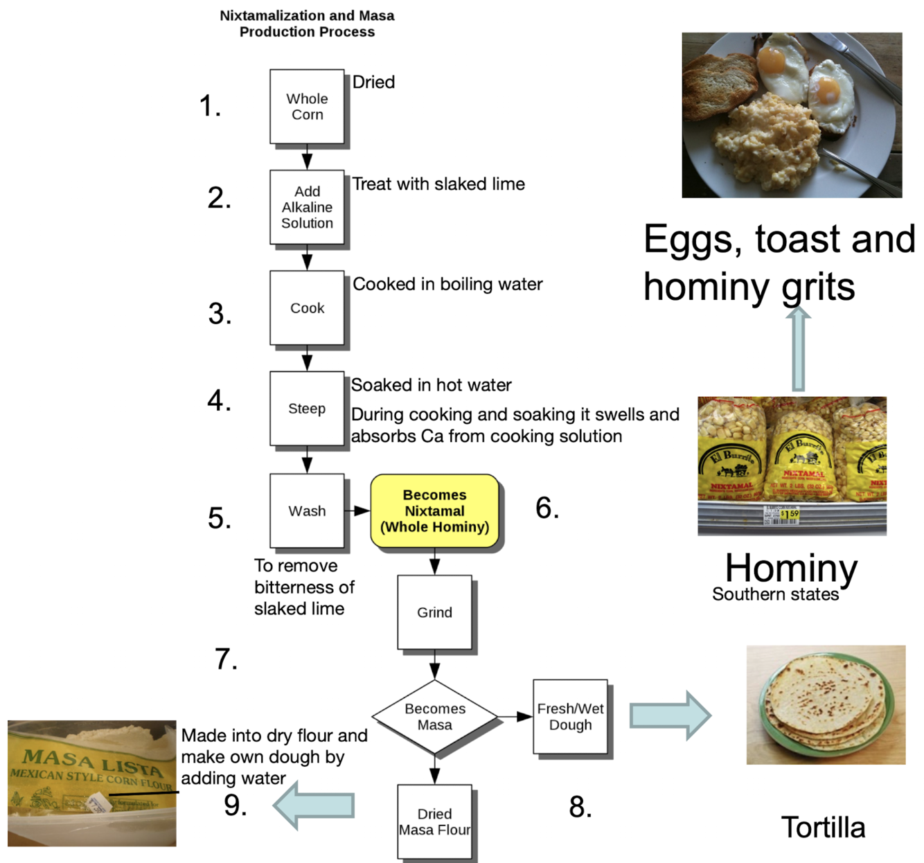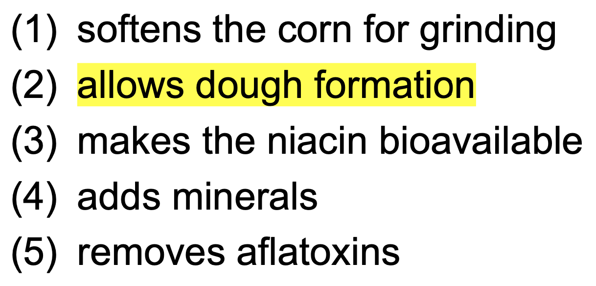 Nixtamalization softens the maize so that it can be ground and formed into a dough called masa which can be cooked into many dishes including tamales (steamed masa)