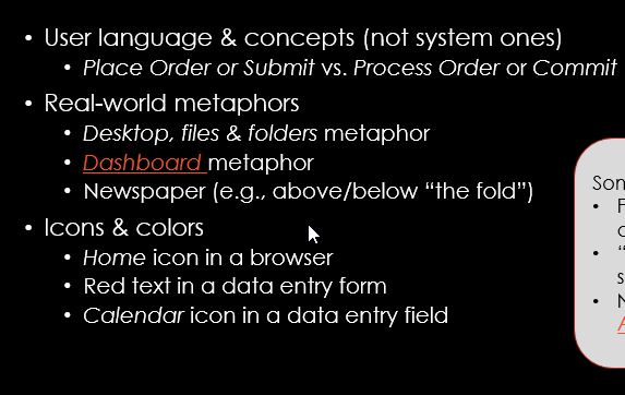 what heuristic is the dashboard metaphor used in