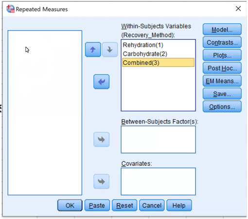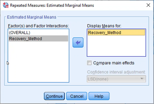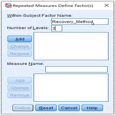4. Type the factor (IV) name (Recovery_Methods) and number of levels (3)