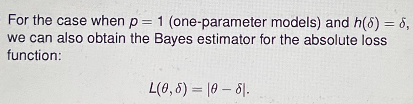 1) define loss function: L(θ,δ) = cost of using delta when param to be estimated is θ
