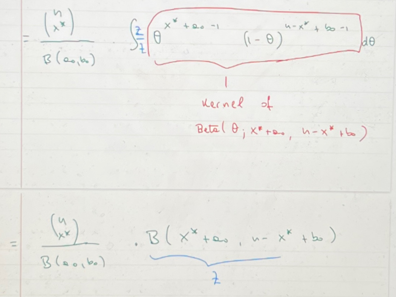 When you find a kernel under an integral you know that when you integrate it it will be equal to the inverse of the normalisation constant as the full dist is integrated to 1