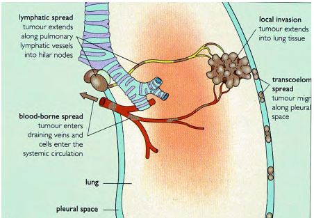 What are the three ways that cancer can metastisize?