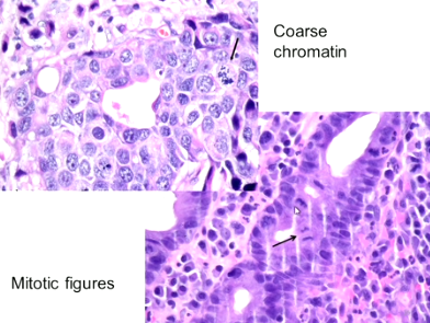 Coarse chromatin and mitotic figures
