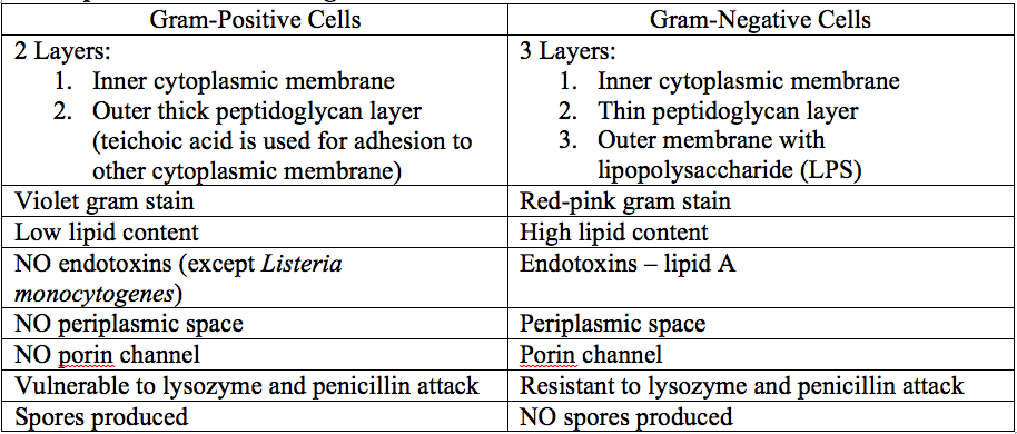 Distinguish between gram positive and gram negative with the following:
