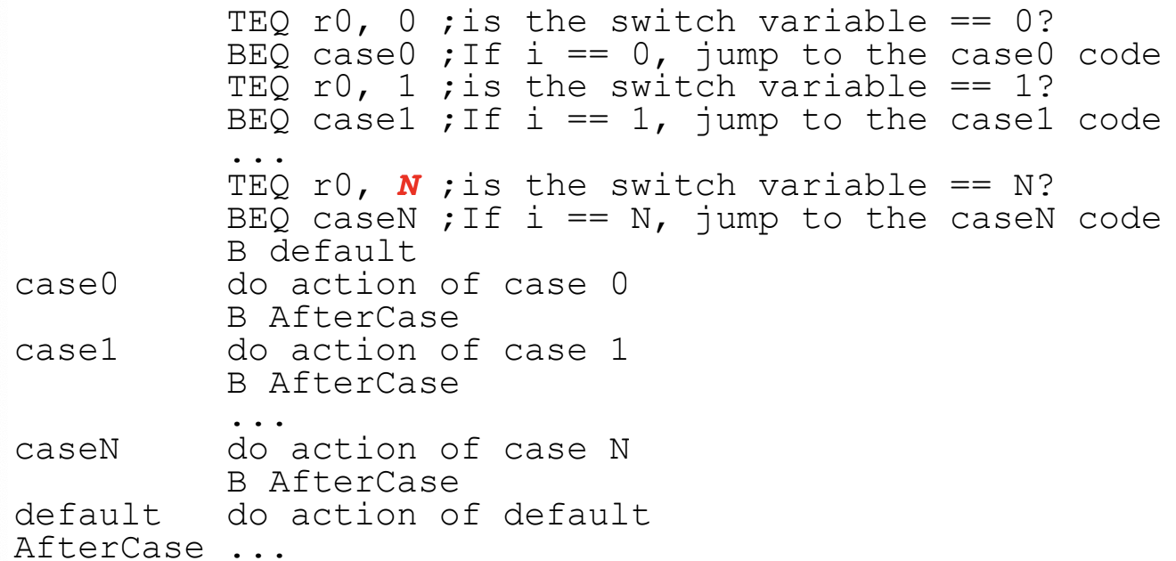 How do you implement a switch statement in ARM?