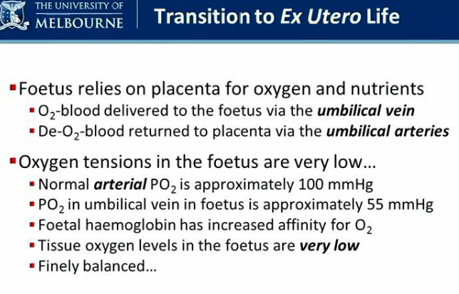 What are oxygen tensions in the foetus compared to a neonate?