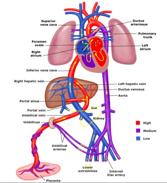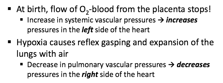 What happens at birth going from blood to air?