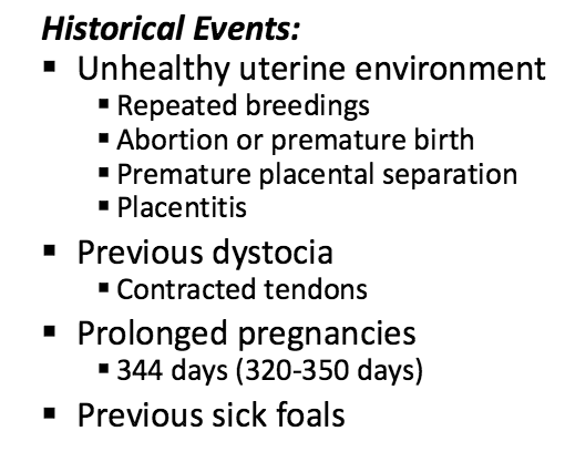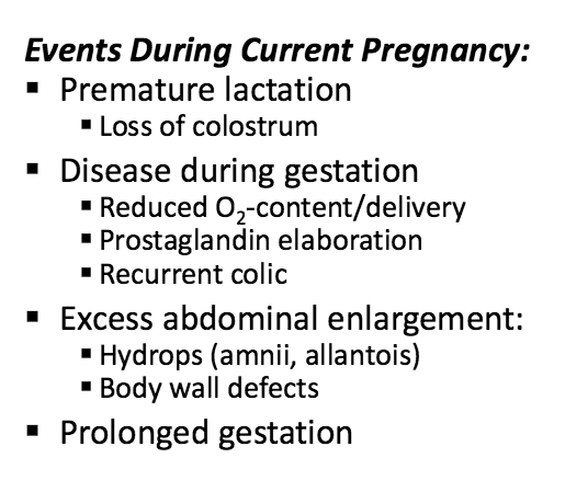 High risk mare events during current pregnancy