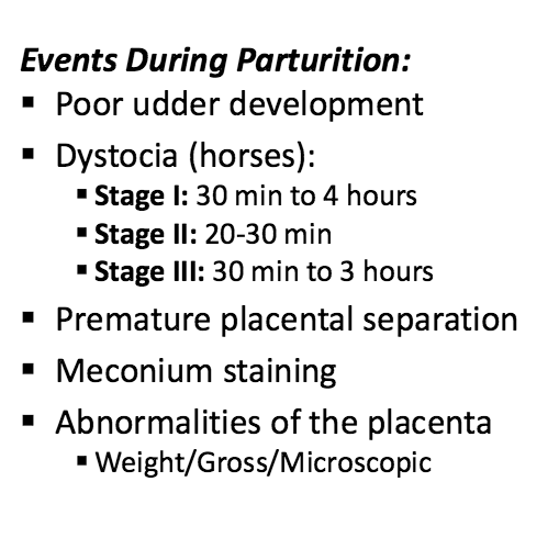 High risk mare events during parturition