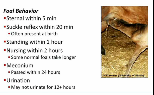 What is normal foal behavior (first 24 hours)?