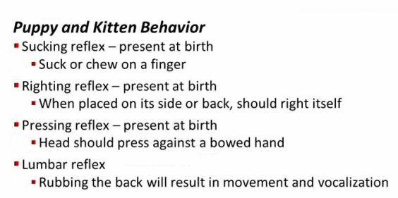 What are the reflexes you might look for in small animals?