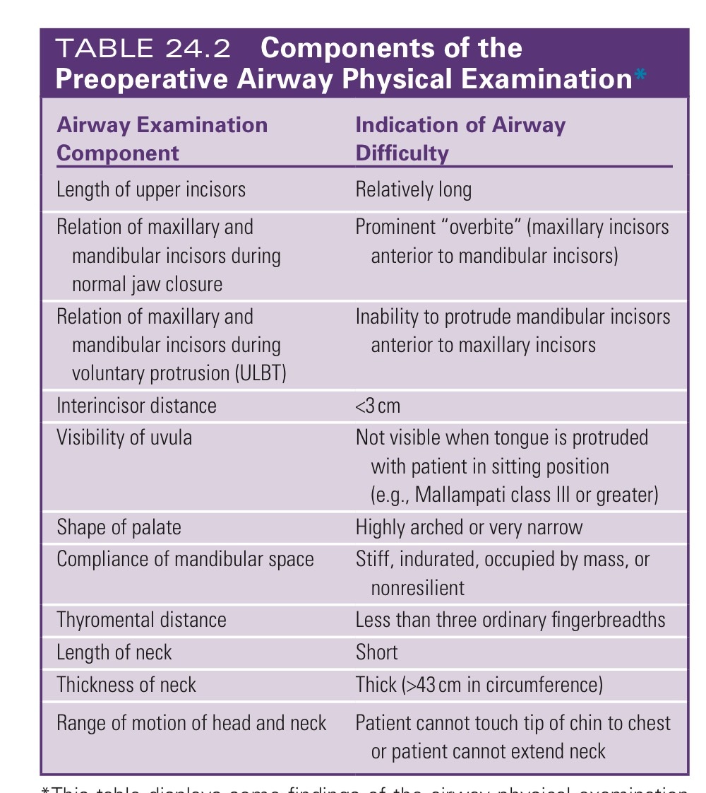 Patient with a history of a difficult airway –> Anesthetic history should be included in airway examiniations