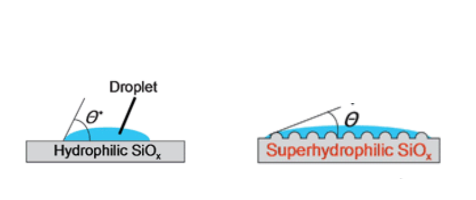 adding surface roughness makes a surface go from hydrophilic –> superhydrophilic