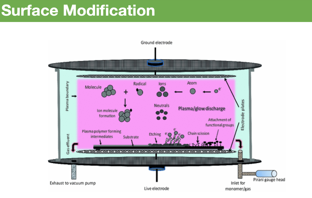 **utilizing electrical field –> create ions –> forced to heat and strike the material –> change material properties