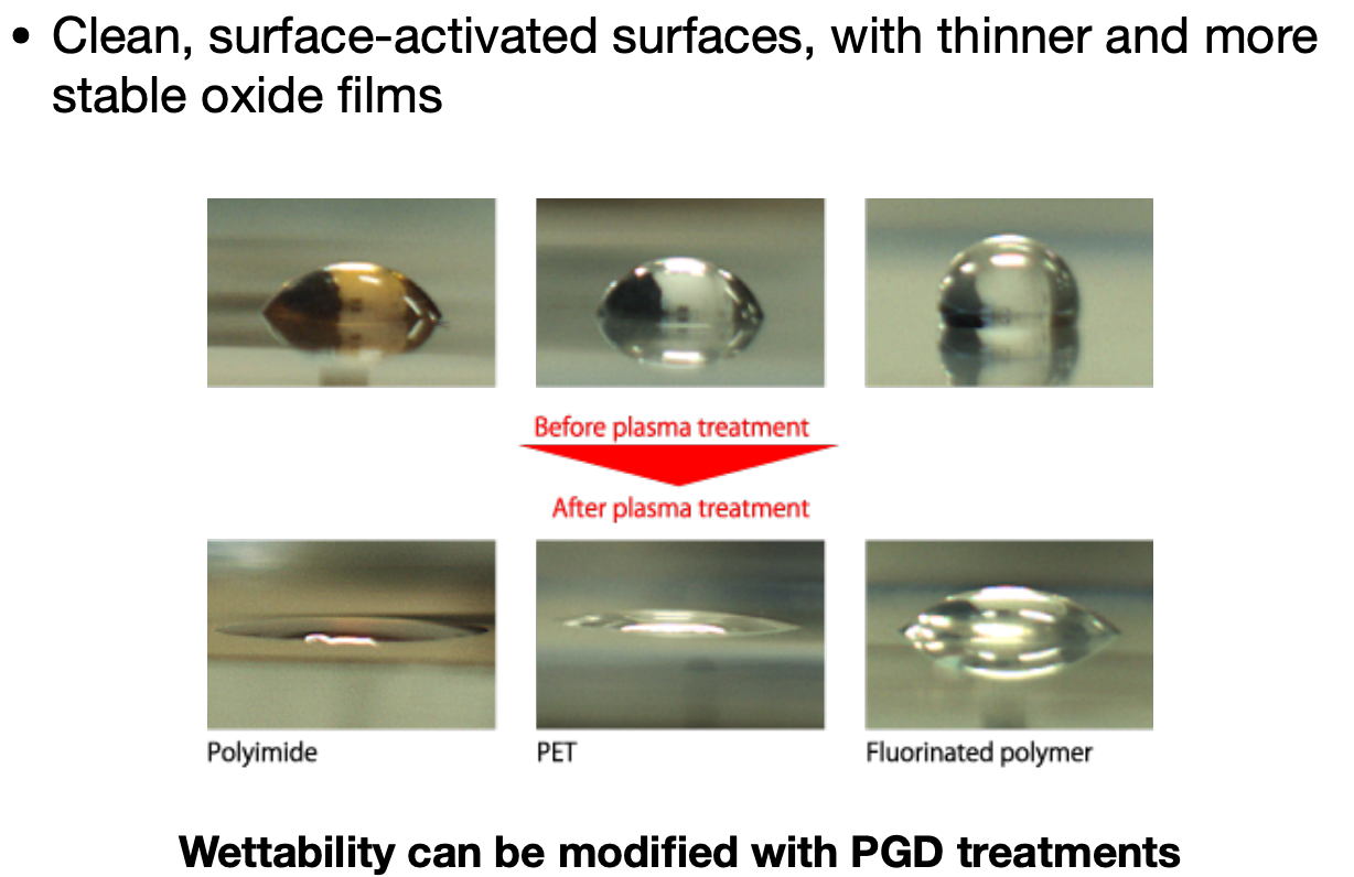 by forcing the electrons to come out, and go towards the material surface, you can create a specific plasma that can: