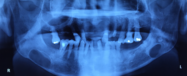 Stafne’s bone cavity- below the IAN canal and bilateral.