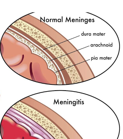 Meningitis is inflammation of the meninges often from a bacterial or viral infection.