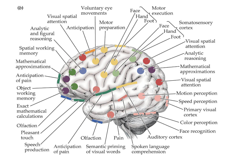 Numerous subsystems in the brain, which are sometimes localized within certain anatomical regions, perform distinct cognitive/behavioral tasks.