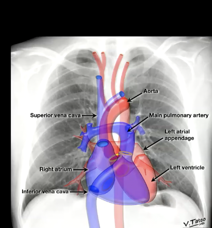Identify Lungs, heart (if you can the different parts too), aorta, and mediastinum on chest XRay