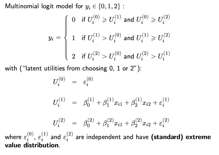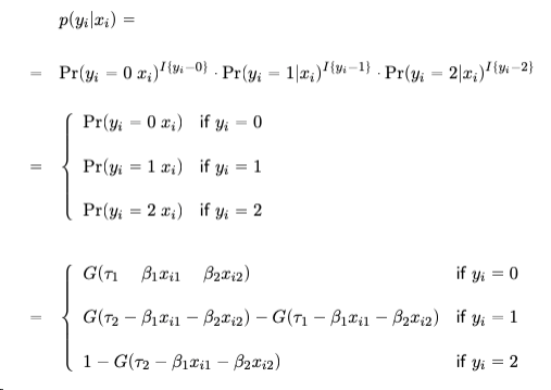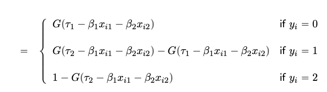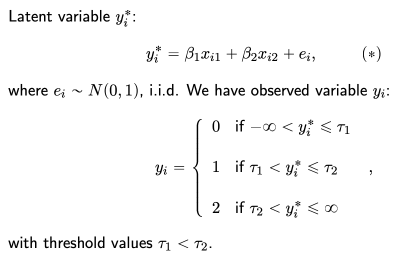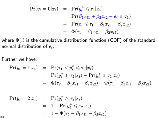 Derive the probabilities for a ordered logit/probit model with (m =) 3 possible outcomes (yi = 0, yi = 1, yi = 2).