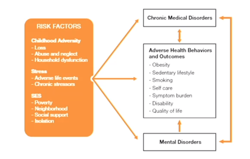 beschrijf de wisselwerking tussen mentale stoornissen en chronische medische stoornissen, welke risico factoren kunnen worden onderscheiden.