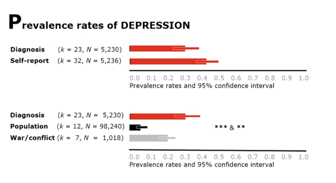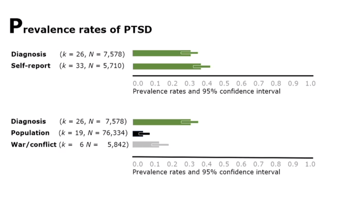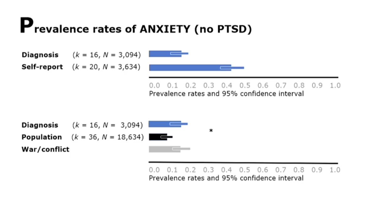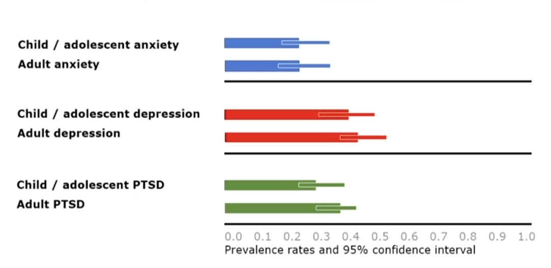 Wat kunnen we zeggen over de verschillen in prevalentie van angst, depressie en ptsd tussen volwasse en jonge vluchtelingen?