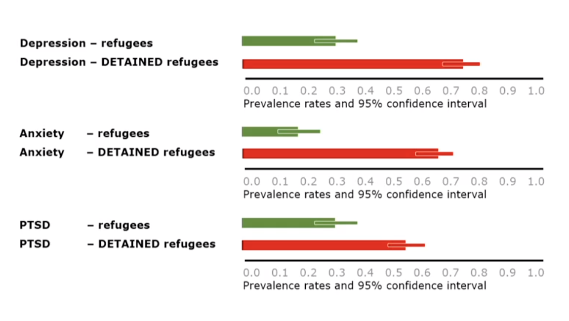 Wat zijn de gevolgen van opsluiting op depressie, angst en ptss bij vluchtelingen in vergelijking met vluchtelingen die niet opgeloten worden?