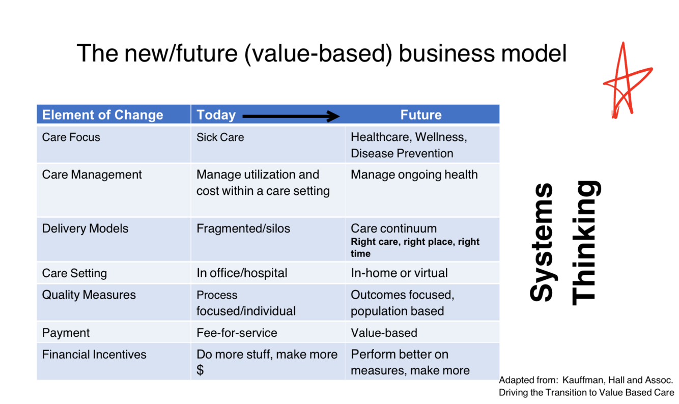 a healthcare delivery model in which providers are based on pt health outcomes… providers are rewarded for helping pt improve their health, reduce the effects and incidence of chronic disease, and live healthier lives in an EBP way