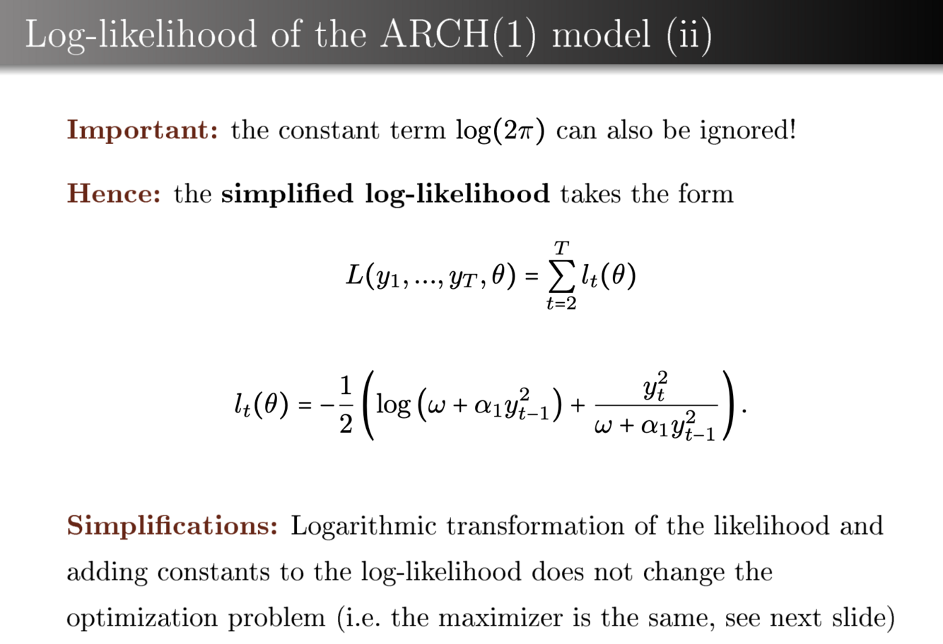 What is used to minimize the log-likelyhood of a (G)ARCH model?