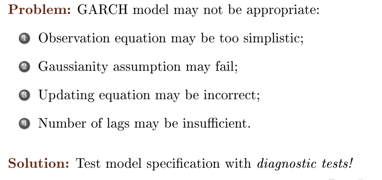 What are 4 possible reasons a GARCH(p,q) model is not appropriate?