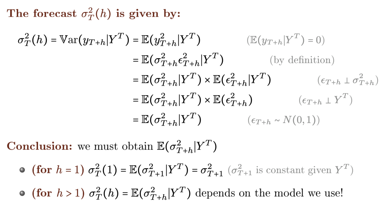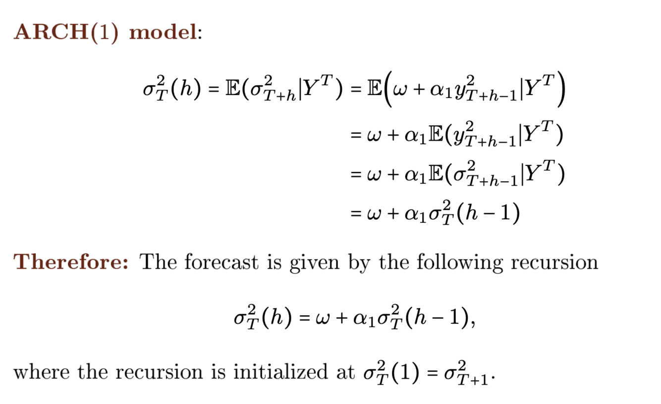 Derive the conditional volatility forecast of an ARCH(1) model.