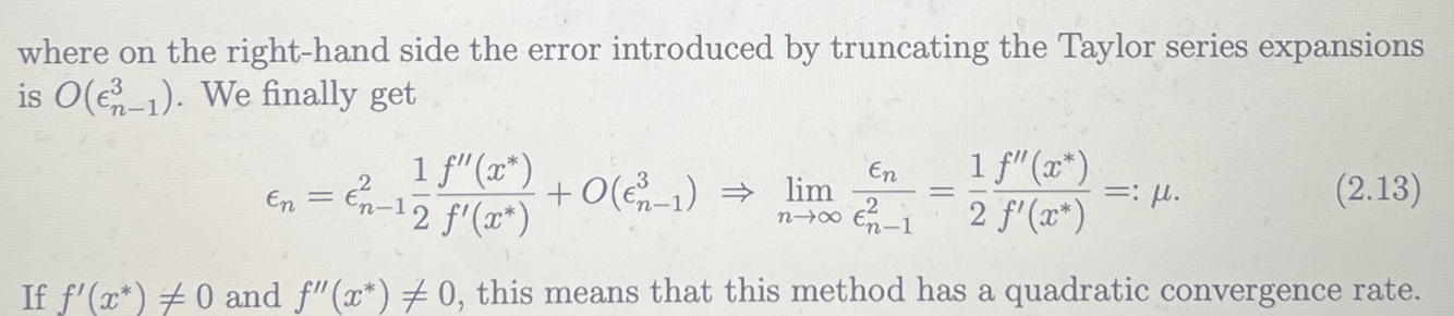 Meaning of quadratic convergence in terms of error
