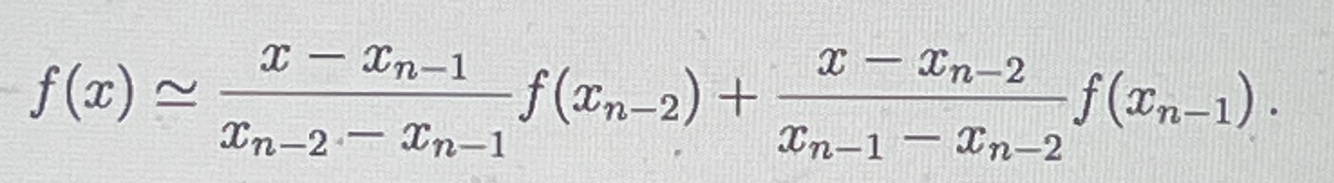 f(x) for Secant method formula