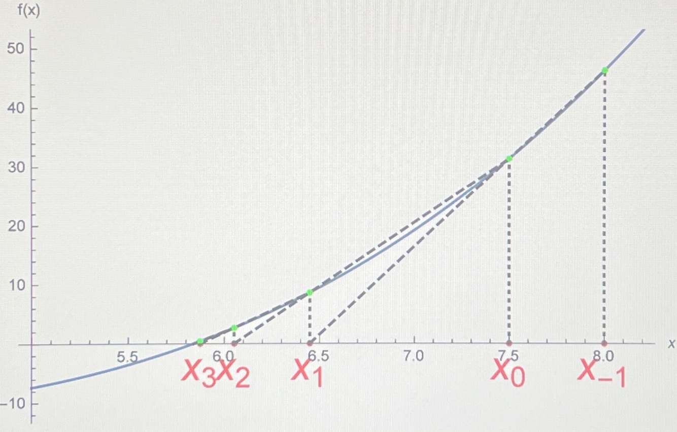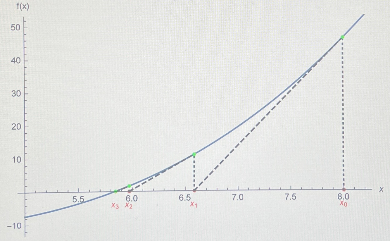 Draw diagram of secant method with first 5 points